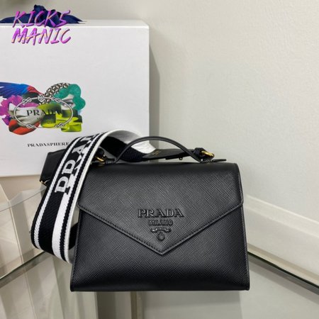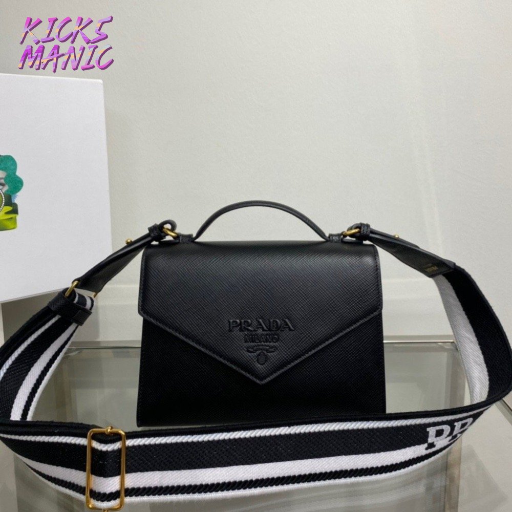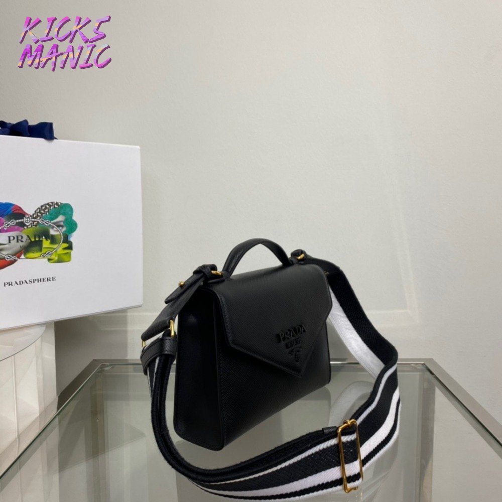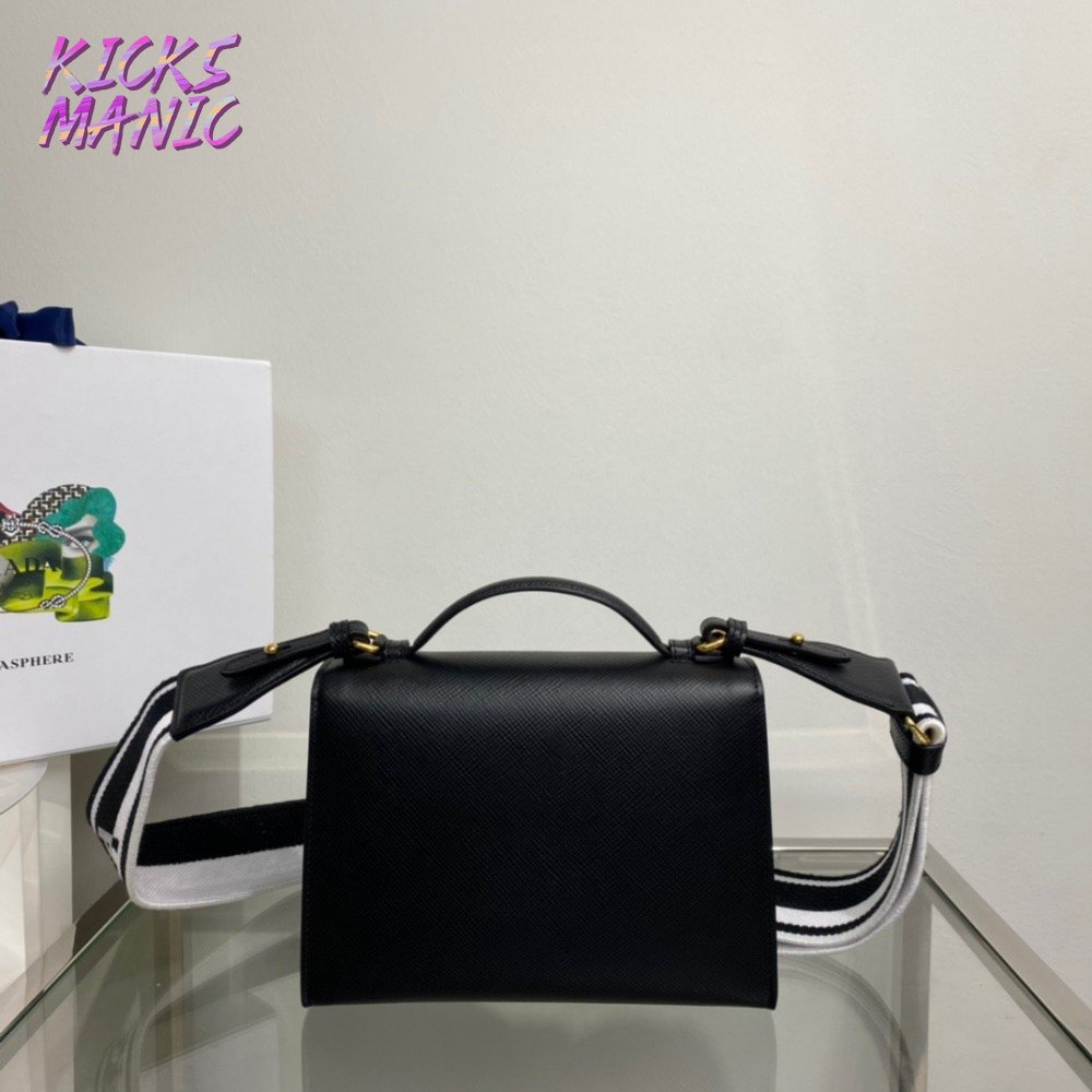Prada Monochrome Saffiano And Leather Bag Black 1BD317