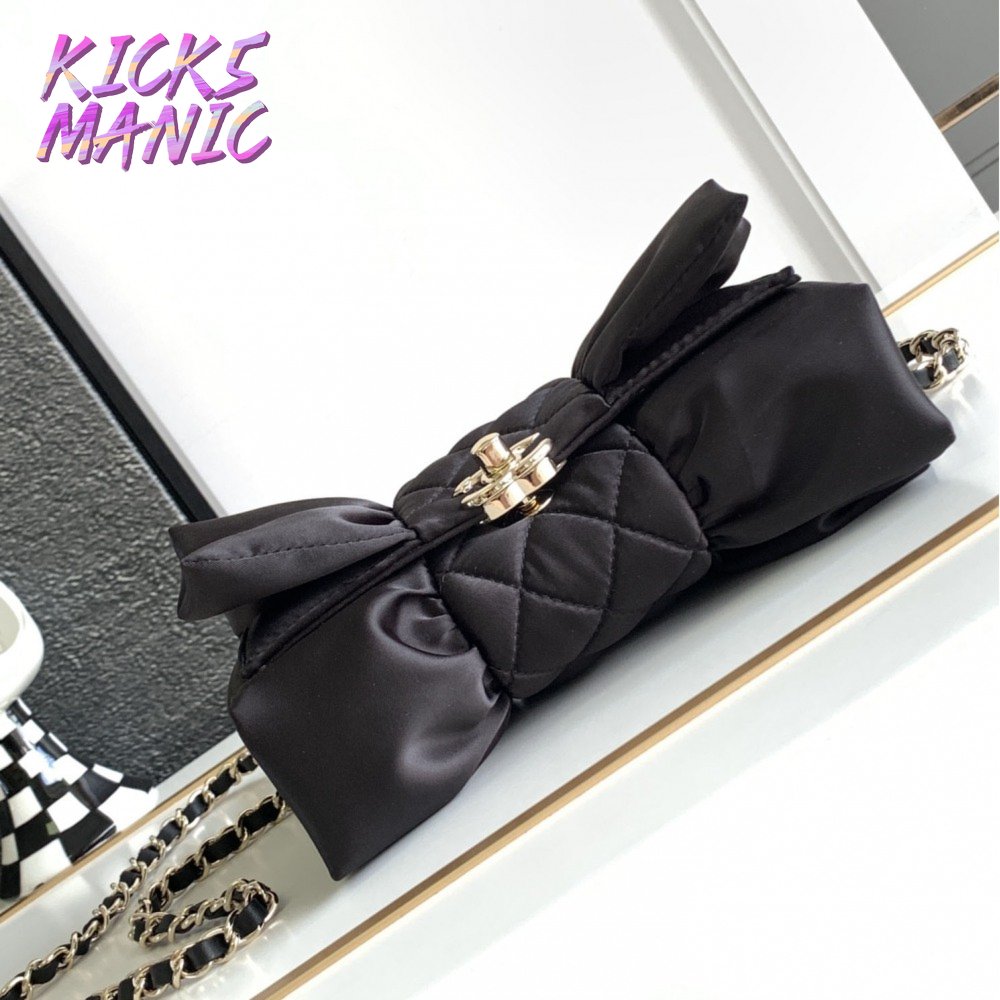 Chanel Clutch Satin & Gold-Tone Metal Black