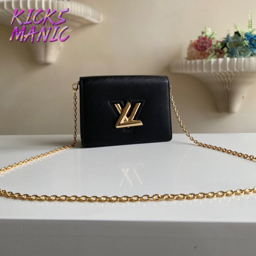 Twist Chain Wallet Epi Grained Leather Black