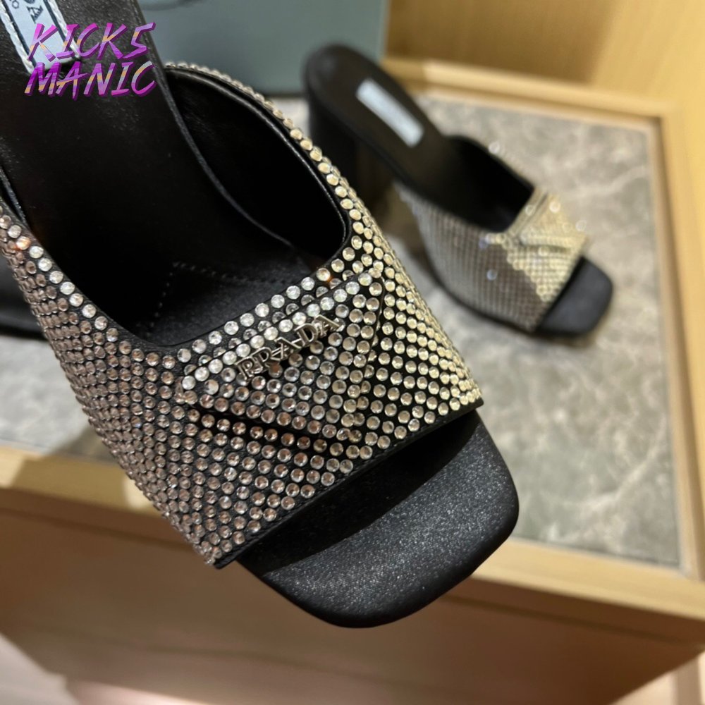 Prada High-Heeled Satin Slides With Crystals 35-42