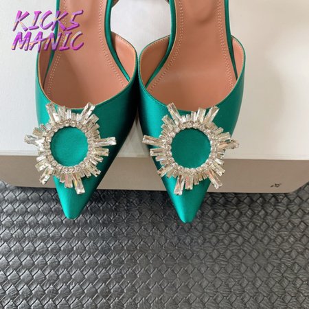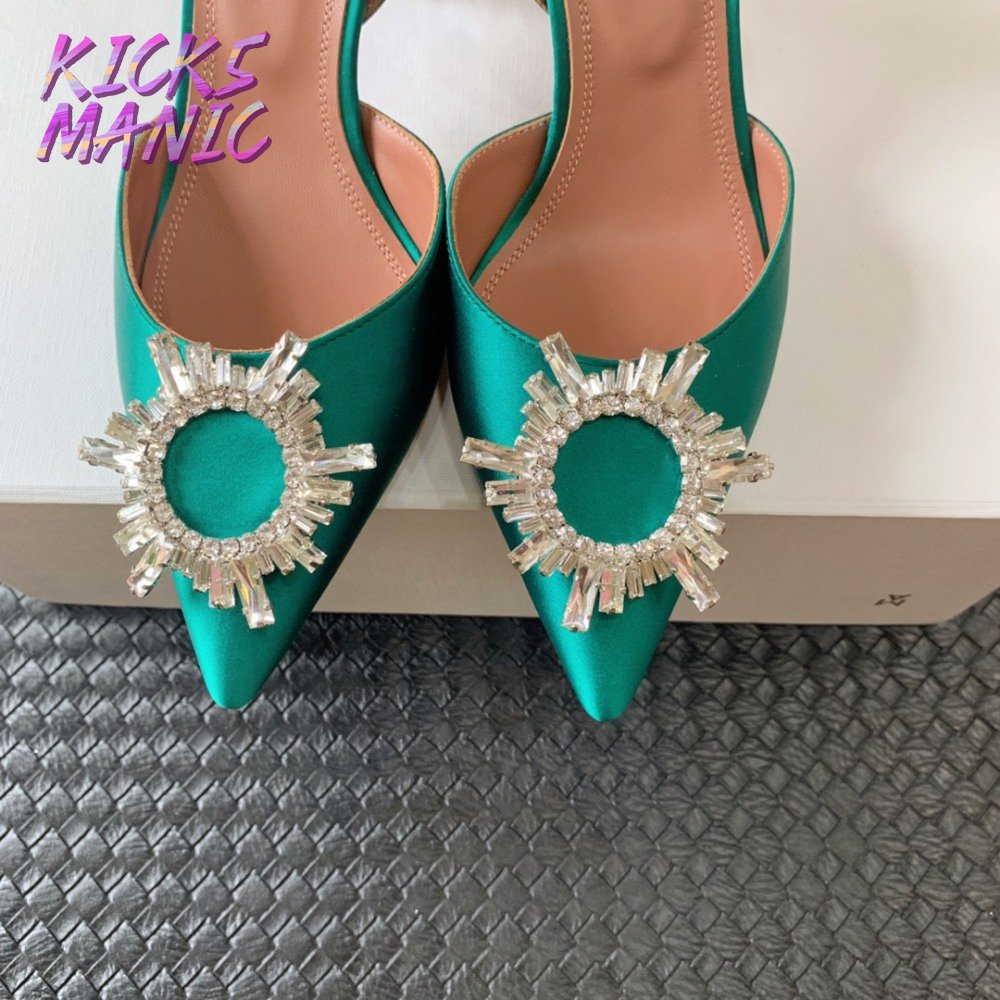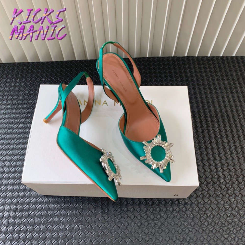 Amina Muaddi Camelia Crystal-Embellished Satin Slingback Courts